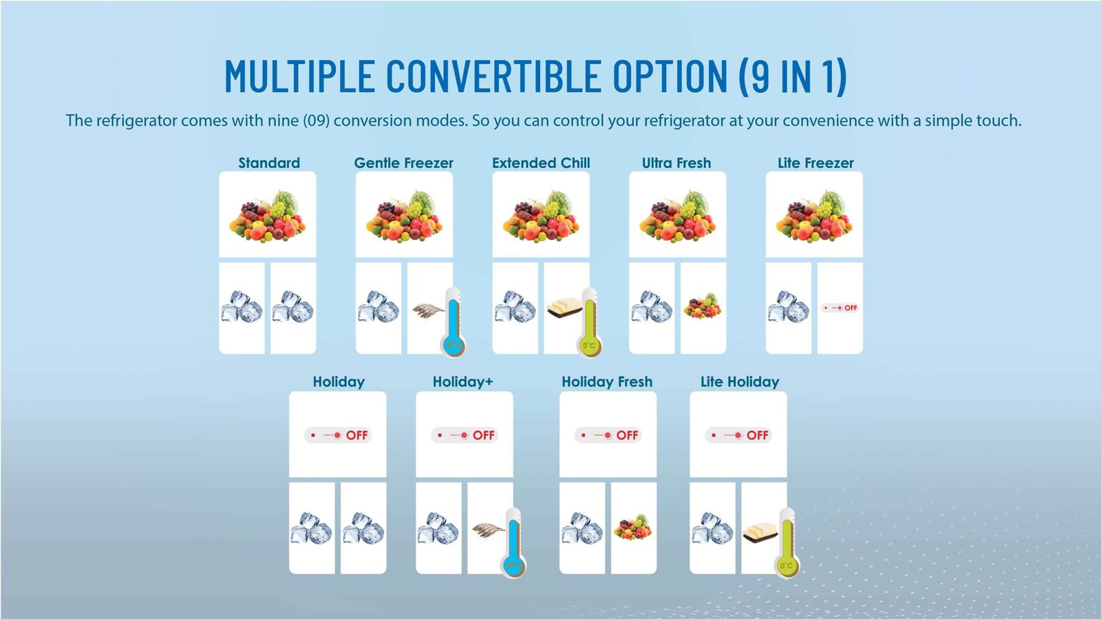 | Cooling Effect | Freezer Cabinet Less than -18℃ Refrigerator Cabinet 0℃ to +5℃ |